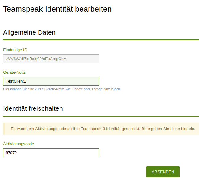 - Code aus dem TeamSpeak Chat von KleinBot in das neue Formular einfügen.