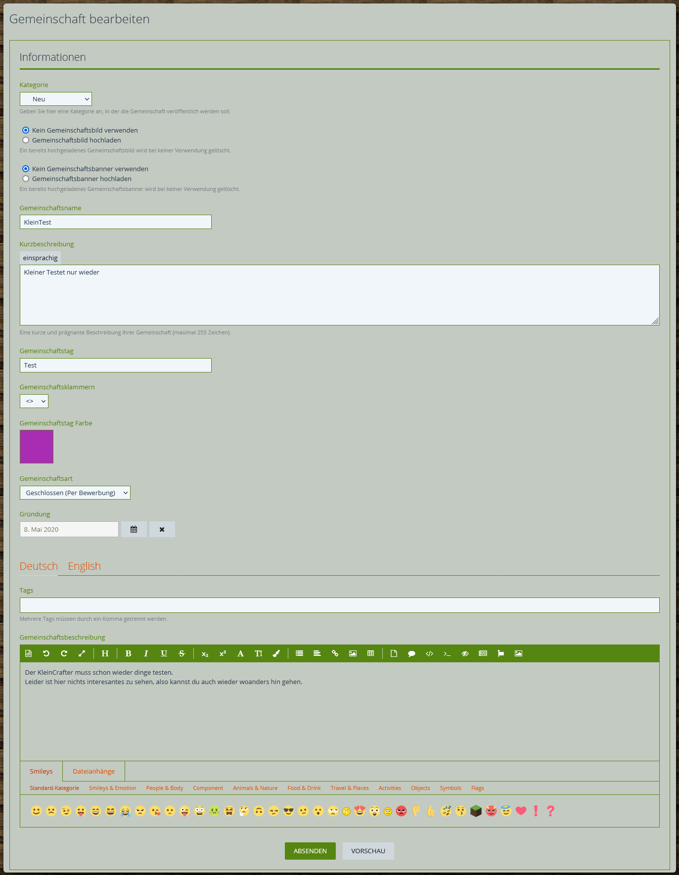 Öffentlich sichtbar wird die gegründete Gemeinschaft allerdings erst nach der ersten Bearbeitung!