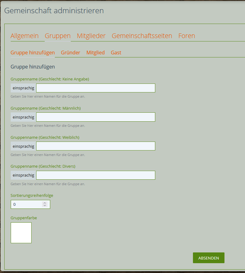 Eine Gemeinschaft ist selbstverwaltend und kann ihre Mitglieder in eigene Gruppen organisieren und diese mit eigenen Berechtigungen verwalten.
