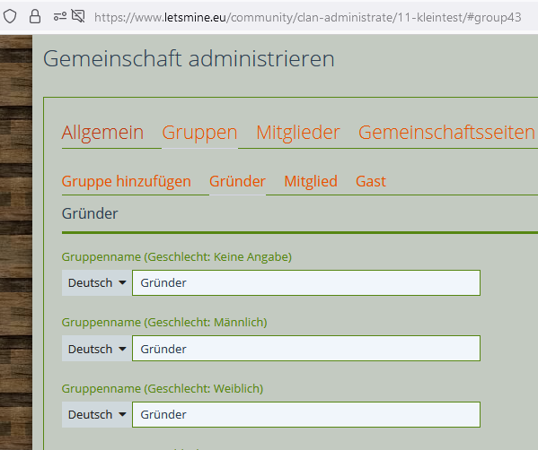 Der Link lautet bei der Gründergruppe https://www.letsmine.eu/community/clan-administrate/11-kleintest/#group43