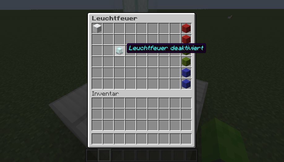 (Lapis Blöcke auf Level 1 verhindern, dass der Stahl vom Leuchtfeuer aktiviert wird, die effekte werden aber vergeben.)
