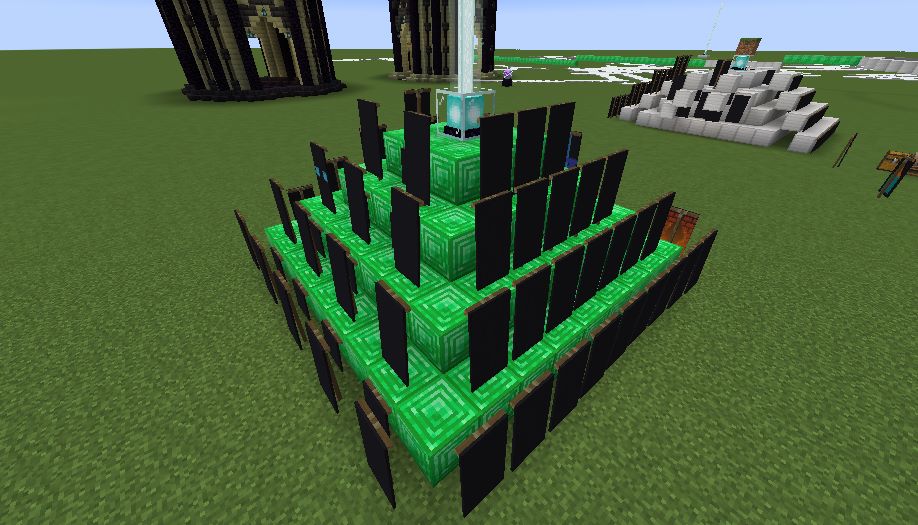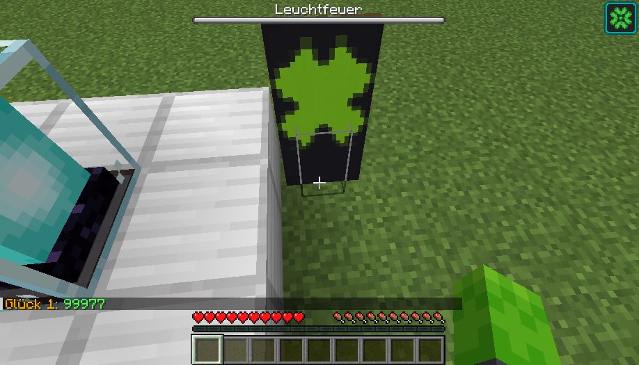 Für jeden verbauten Emerald, Lapis und Diamand Blöcke wird die Reichweite um 2 Blöcke erhöht.